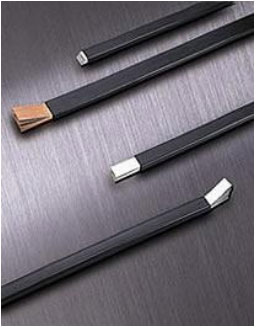 | Flexible insulatedbusbars consi st of several layersofuncoated or tinned copper stri ps and are insulated with flexi ble high quality PVC compound. | |